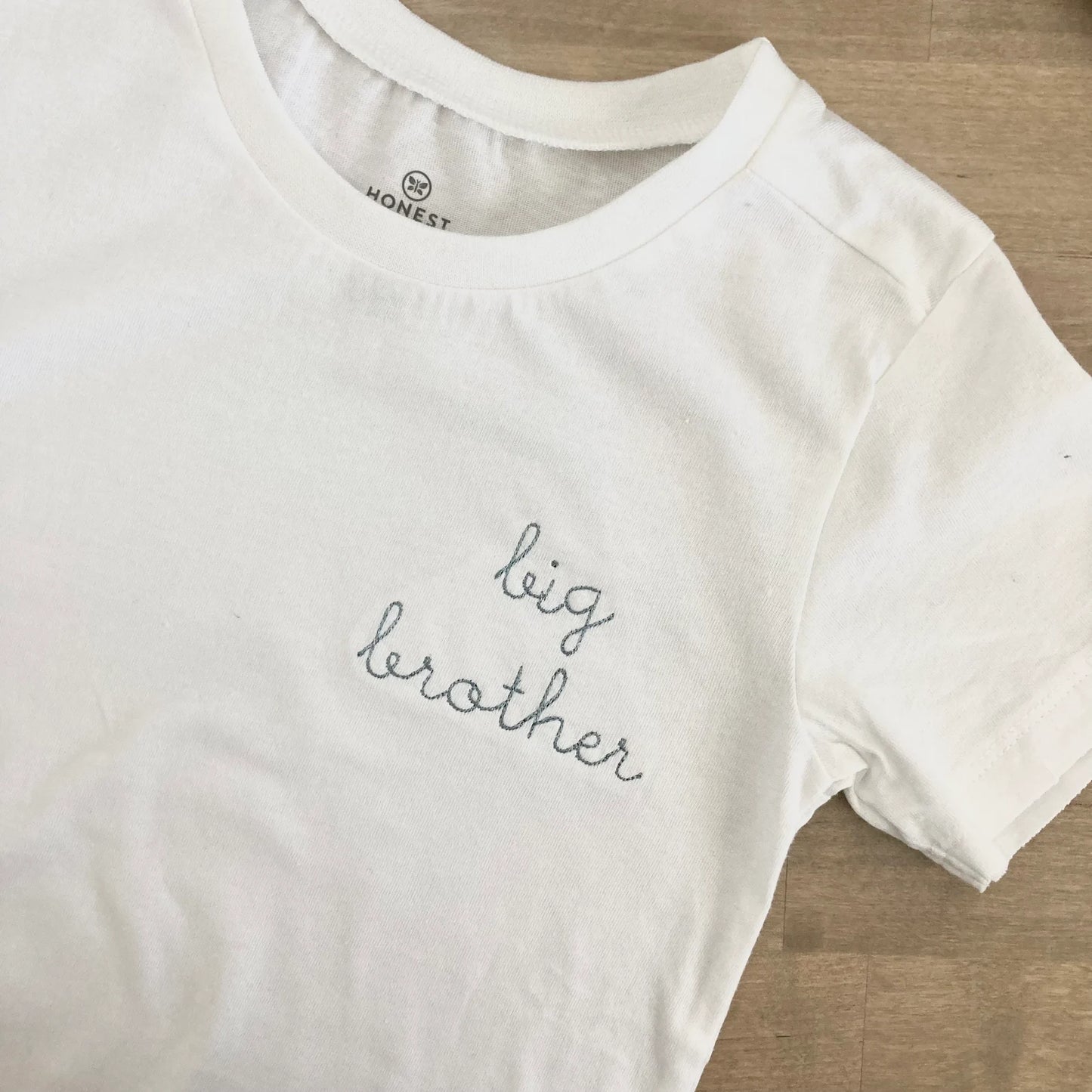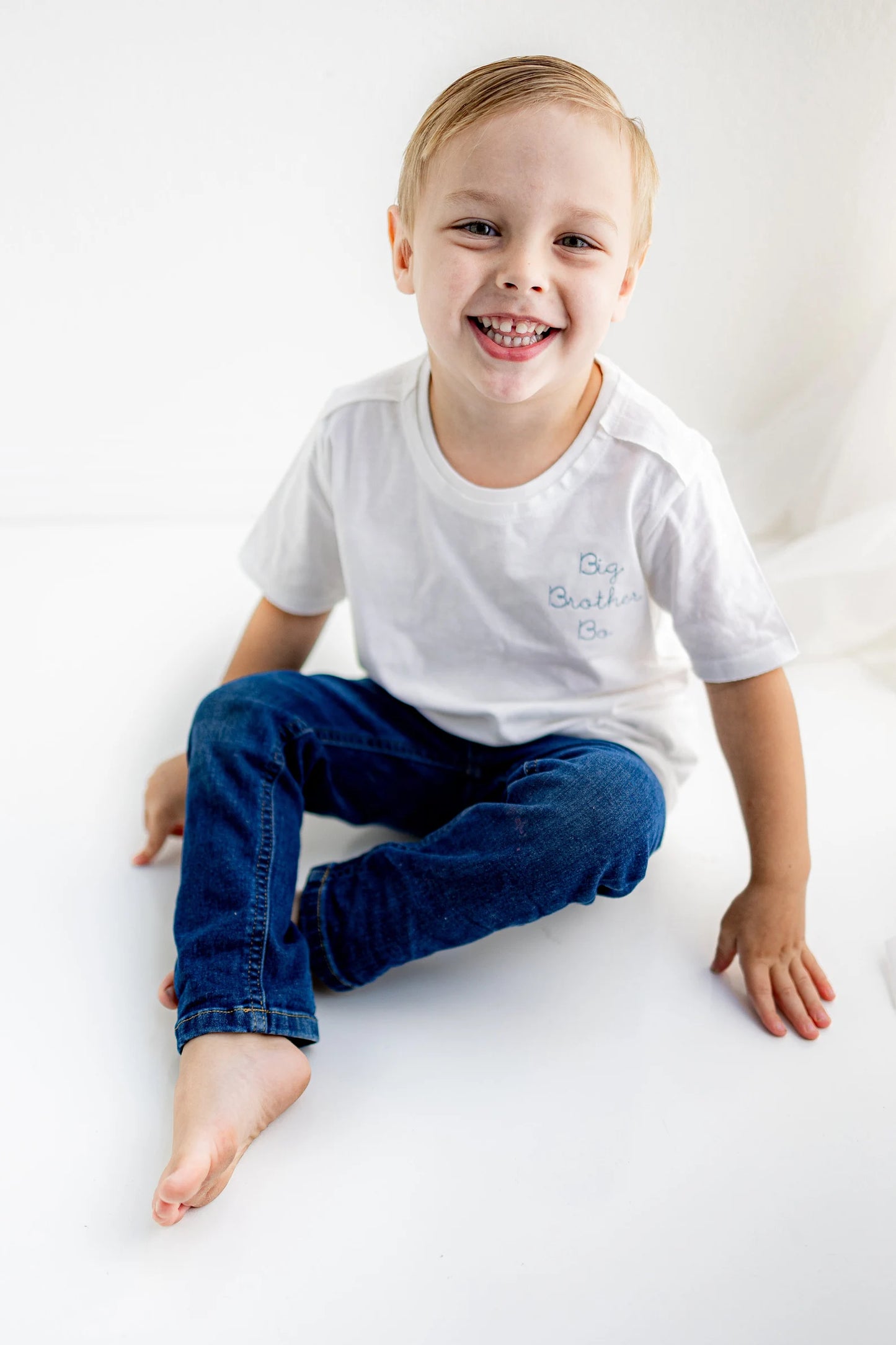 This “big brother” embroidered shirt is perfect for pregnancy reveals, newborn photos, or everyday proud big bro moments. Made in house at our CA warehouse on the softest kids’ tees for all-day comfort.