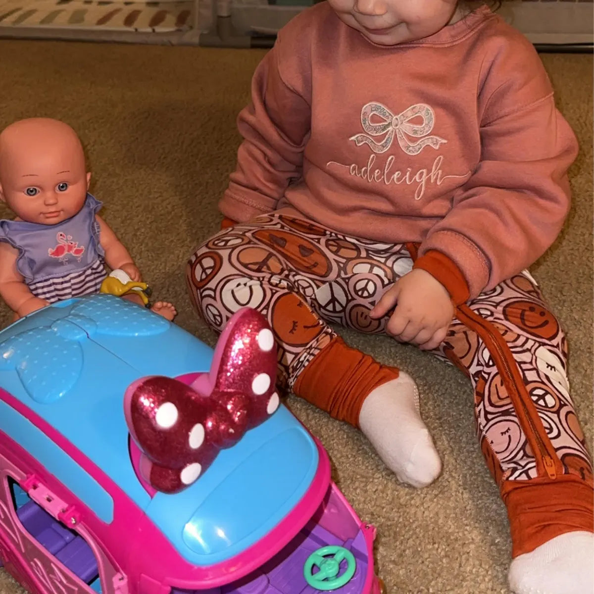 Where pretty meets personalized! This cozy crewneck features an adorable bow appliqué, stitched with London of Liberty floral fabric. Your little one's name will be embroidered below the bow in pretty script font (please note, this font is all lowercase). Perfect for girly girls, birthday gifts, Valentine's Day or just because!