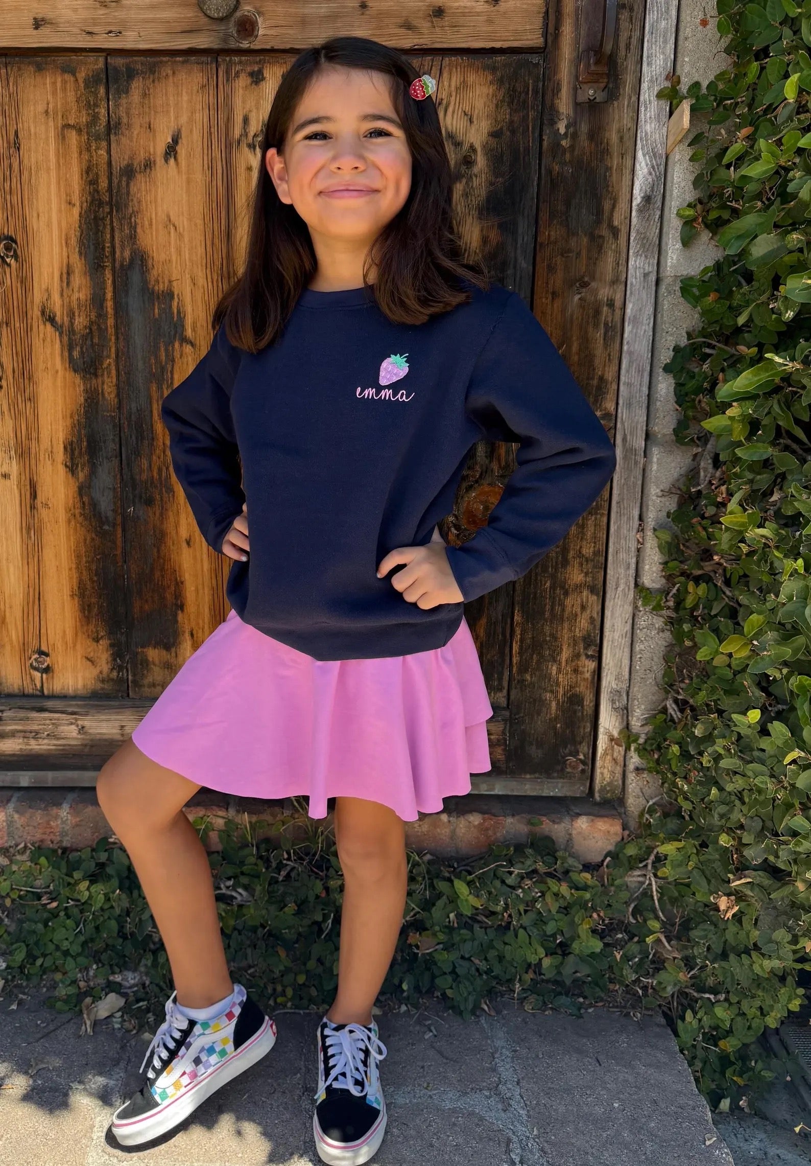 A berry sweet sweatshirt made just for your little! Our cozy toddler crewneck features your little one’s name embroidered in our fun script font, paired with the cutest little strawberry. Perfect for playdates, school, or just adding a little sweetness to their everyday style.
