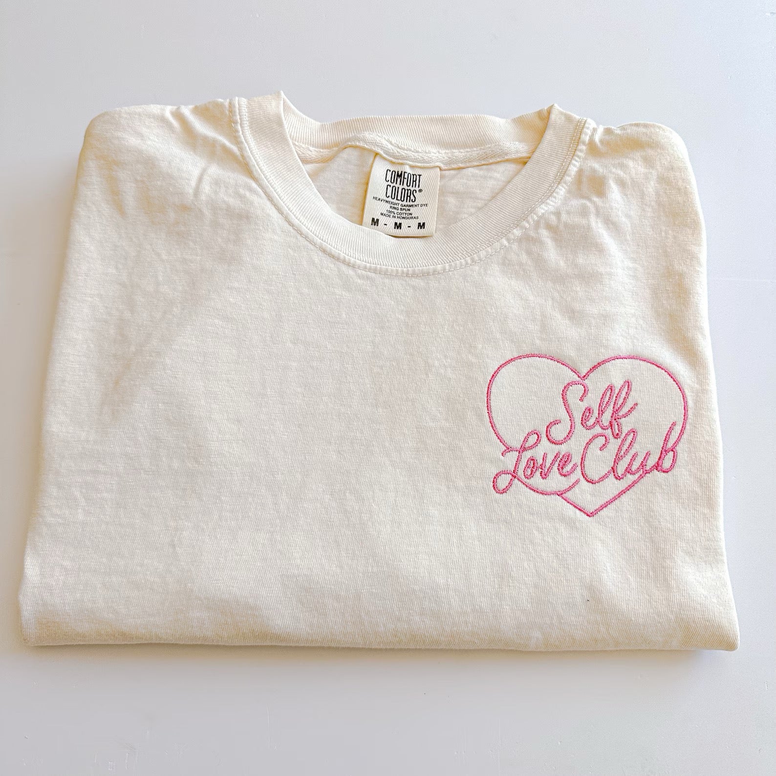Join the club, the one that starts with loving you. This cozy tee features a dainty embroidered heart with “Self Love Club” stitched in your thread color choice. Perfect for layering, gifting, or rocking solo when you’re owning your self worth.