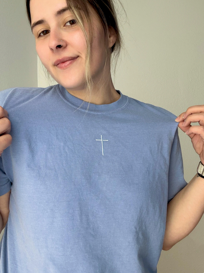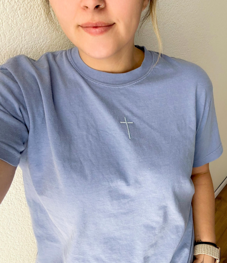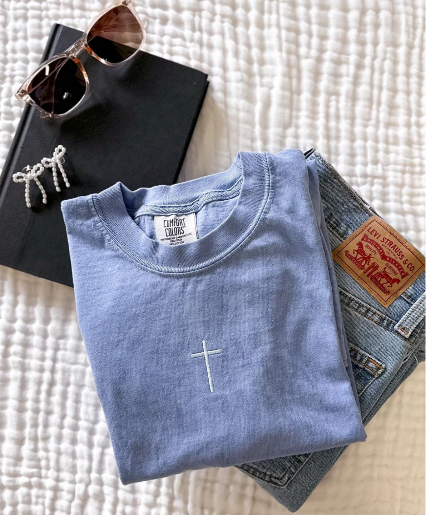 This Comfort Colors tee features a single, clean embroidered cross: simple, meaningful, and effortlessly! A quiet statement of faith that goes with literally anything and everything!