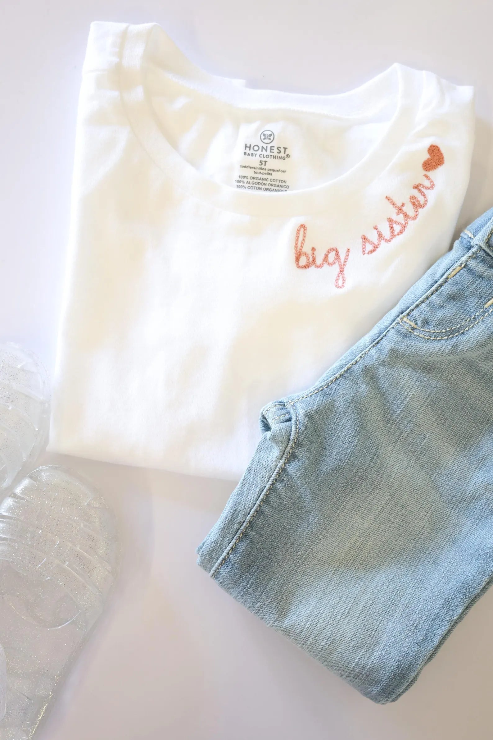 Simple, sweet, and personalized. Your little one will love her big sis comfy white tee embroidered with her new role! Perfect for everyday wear or a cute photo op!