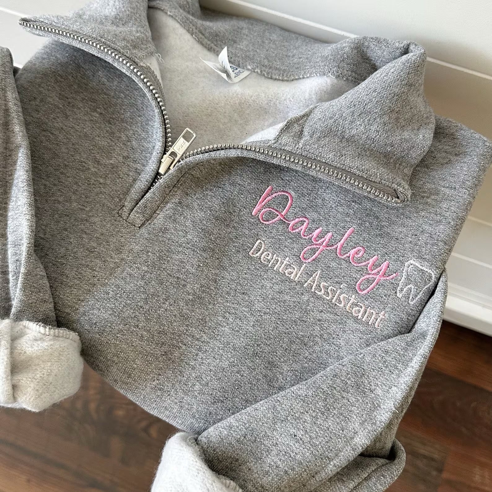 The perfect cozy zip up for dental assistants! Embroidered with your name + title and a tiny tooth design that’s too cute to pass up.