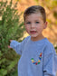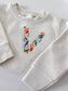 A wild twist on personalization! This cozy crewneck features a dino filled initials in primary colors.. A playful fave for dinoloving kiddos!