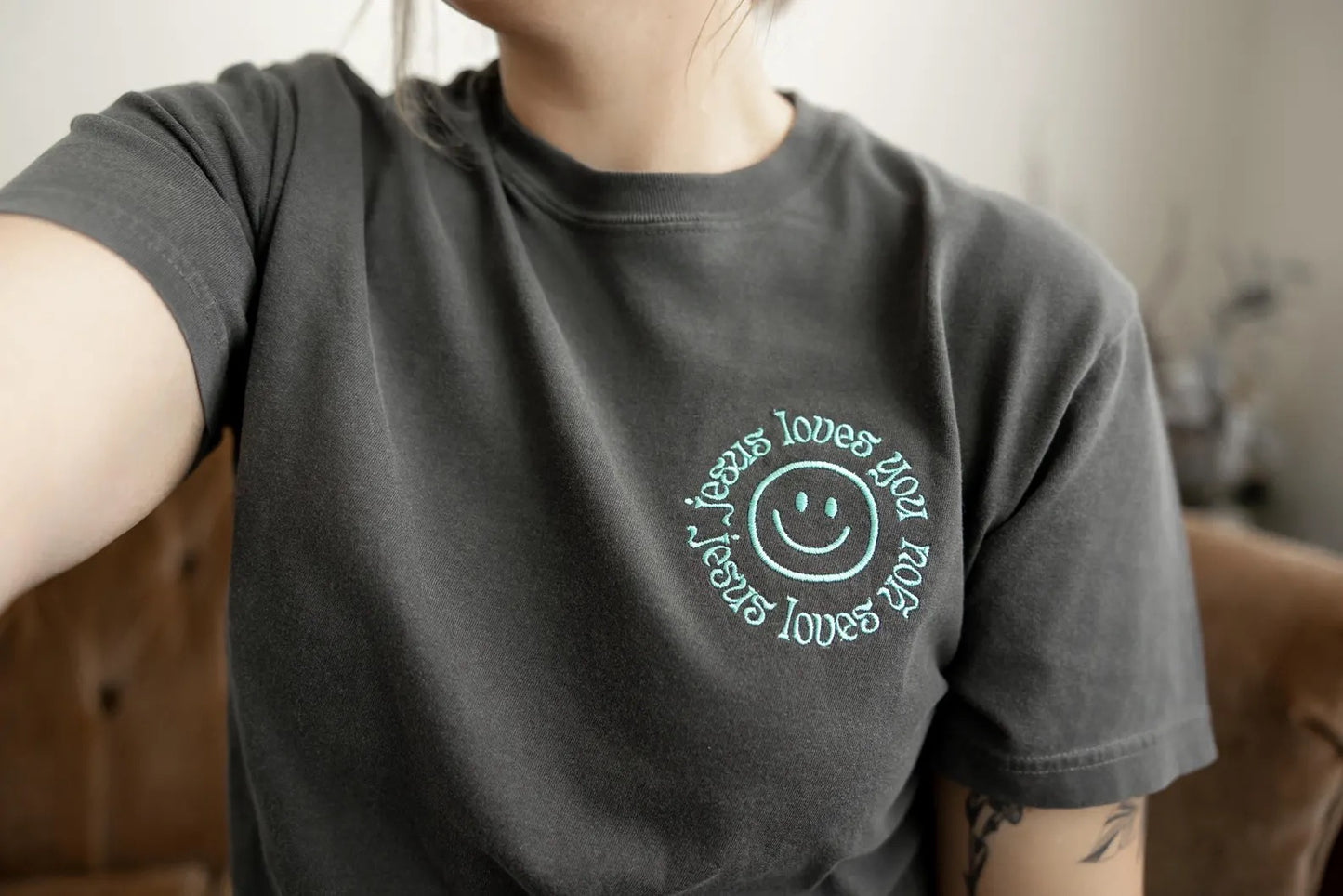 A soft reminder that you're loved, always! This Comfort Colors tee features a delicate "Jesus Loves You" embroidery, stitched with care on a garment-dyed, with a perfect vintage washed style that only gets better with time. Whether you're wearing it as a daily encouragement or gifting it to someone special, it's more than just a tee, t’s a message.