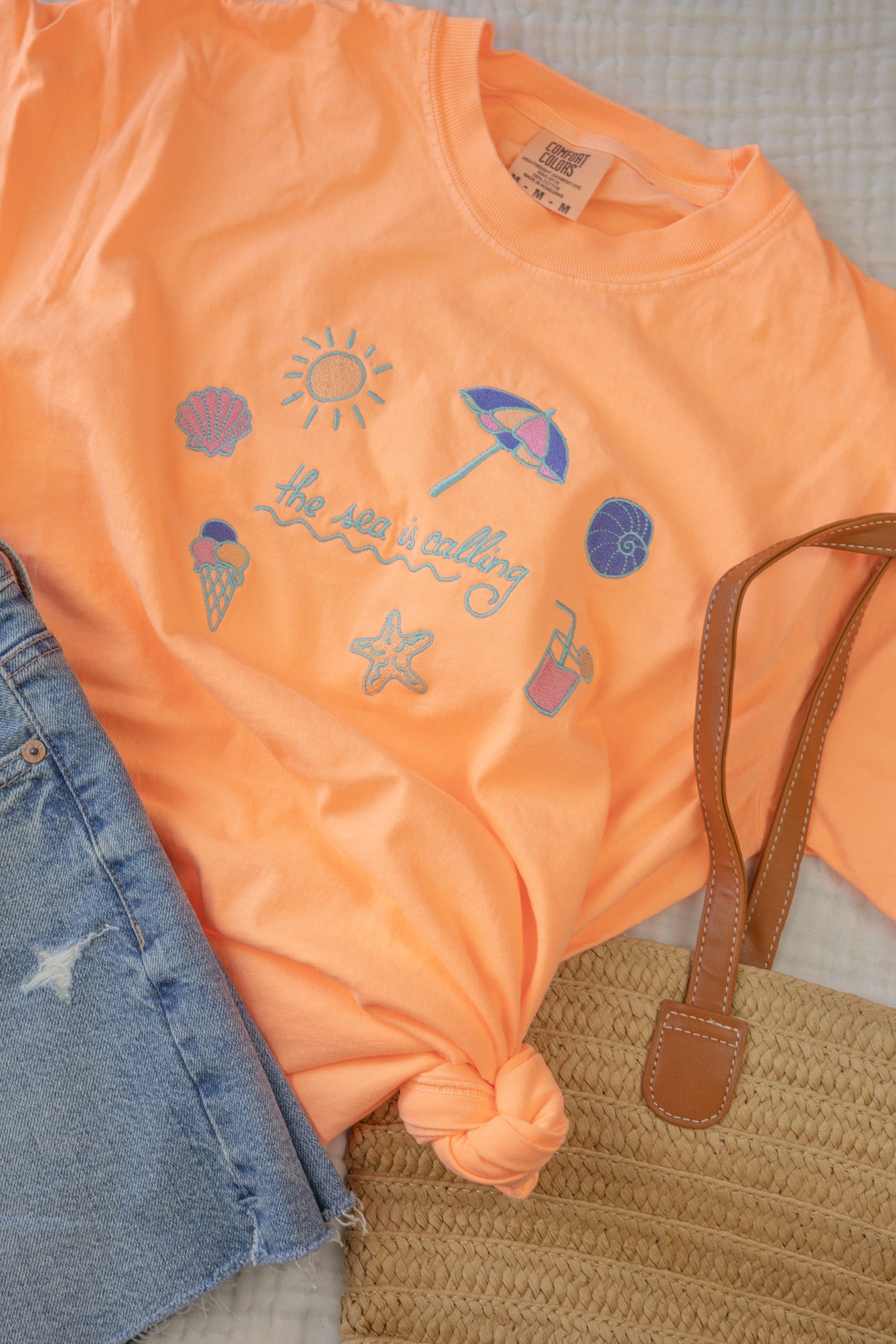 Packed with cute coastal icons and summer vibes, this tee is the call to the ocean (and summer!) that we’ve all been waiting for.