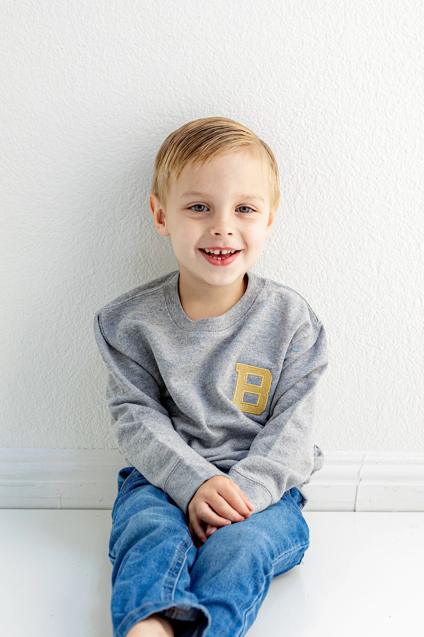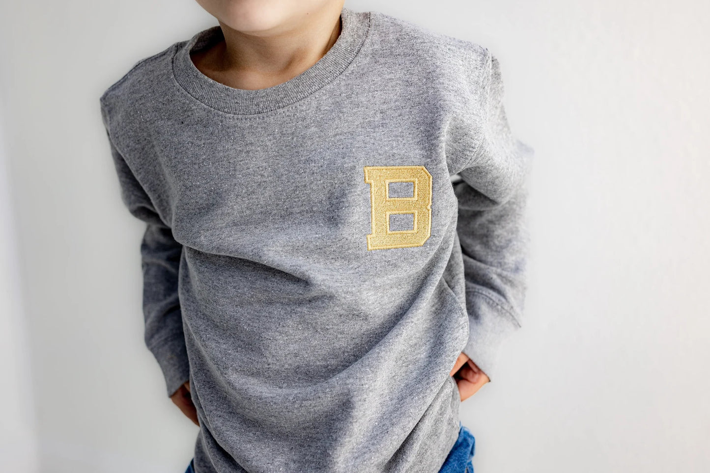 One of our best sellers! Simple, sweet, and stitched just for your little one! These cozy crewnecks feature a bold variety initial! Perfect for playdates, school days, or snuggly mornings!