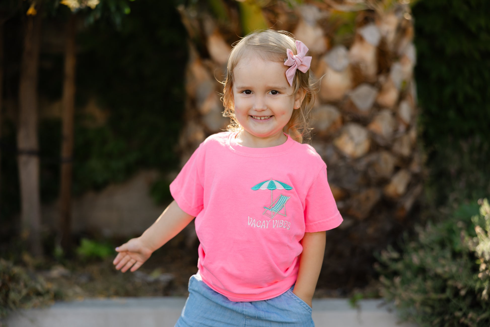 Sunshine, giggles, and a whole lot of vacay vibes. This playful tee is made for your littles who love beach days and adventure days. Featuring a sweet embroidered beach chair and umbrella, it’s the cutest reminder that good times are just a sunshine day away.