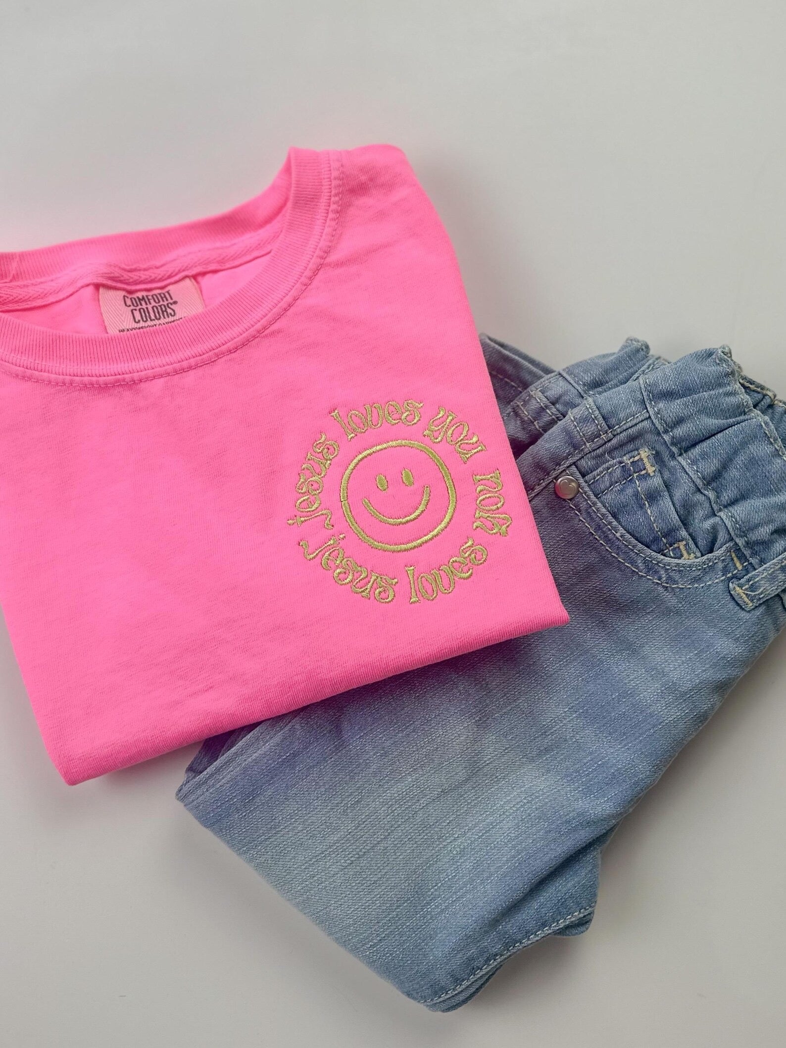 Jesus Loves You Embroidered Comfort Colors Tee